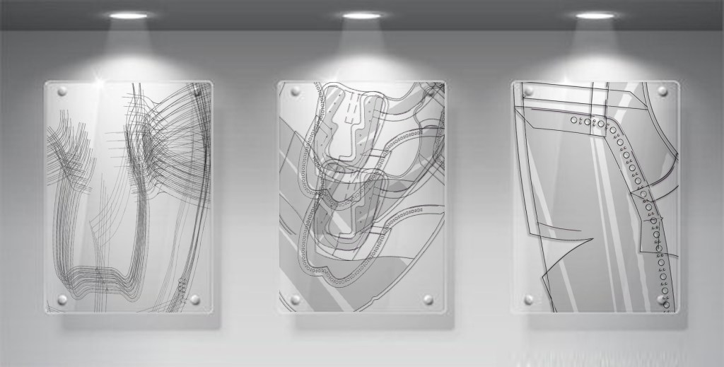 Creating spatial plexiglass objects of the Puzzle series shoe sculptures and the DONE Flourish around designs. Work is now on……… 2025-26