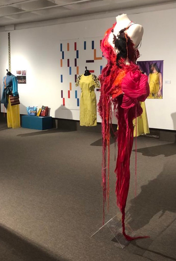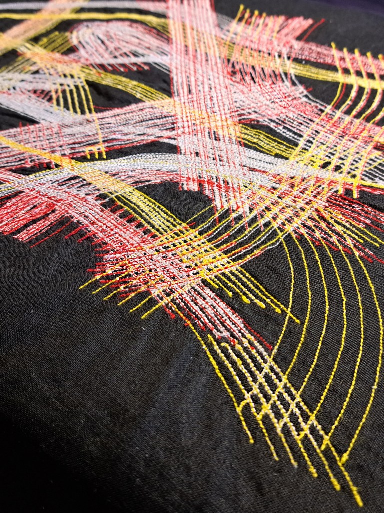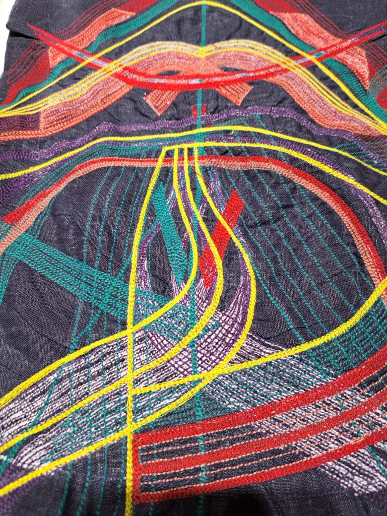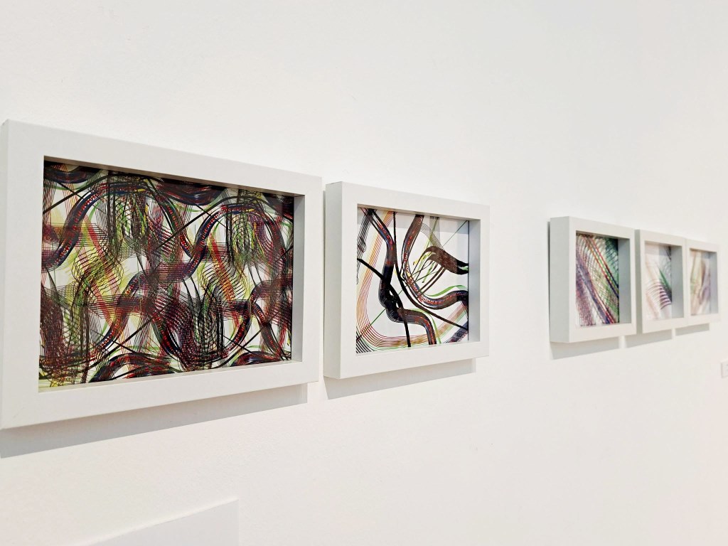 I presented some of my experimental autonome works at this exhibition. My aim is to express the beauty of the shoe industry’s engineering work by creating a visualization of the digital pattern editing process. The shoe industry production development turns out in digital platforms and I objectified the aesthetic view which I see on the computer screen during the pattern editing works. The plexiglass spatial artwork shows the shoe patterns of 18 overlapping parts featuring the full-brogues oxford style sneakers. The object’s size is 3:1 magnification of its actual EU 37 size. Beyond this I presented a Miniature textile artwork where 95 lines of the pattern parts overlap each other and fulfill the canvas sheet with differend coloured threads. The coloured threads cross over each other on the canvas sheet creating an interesting landscape.