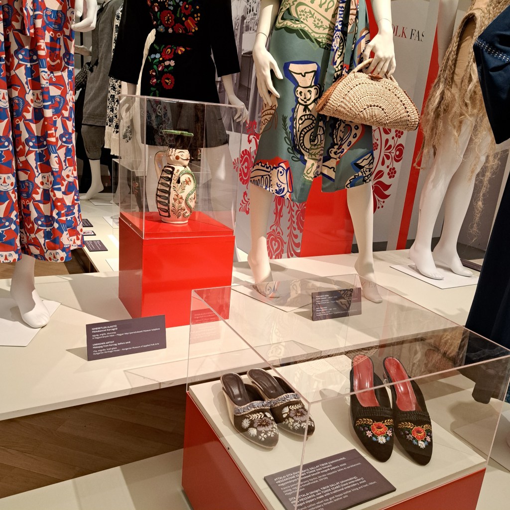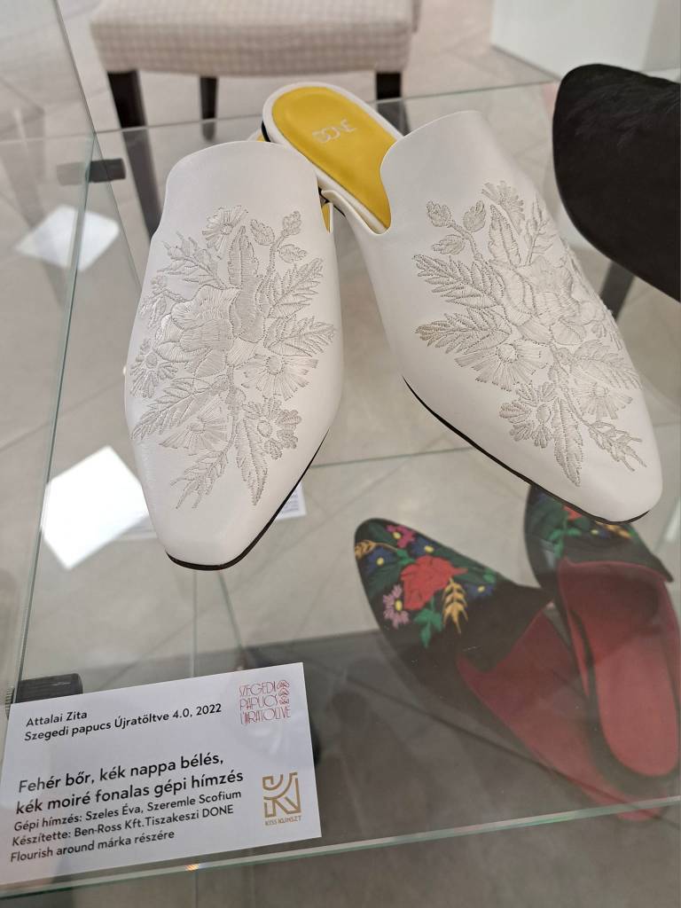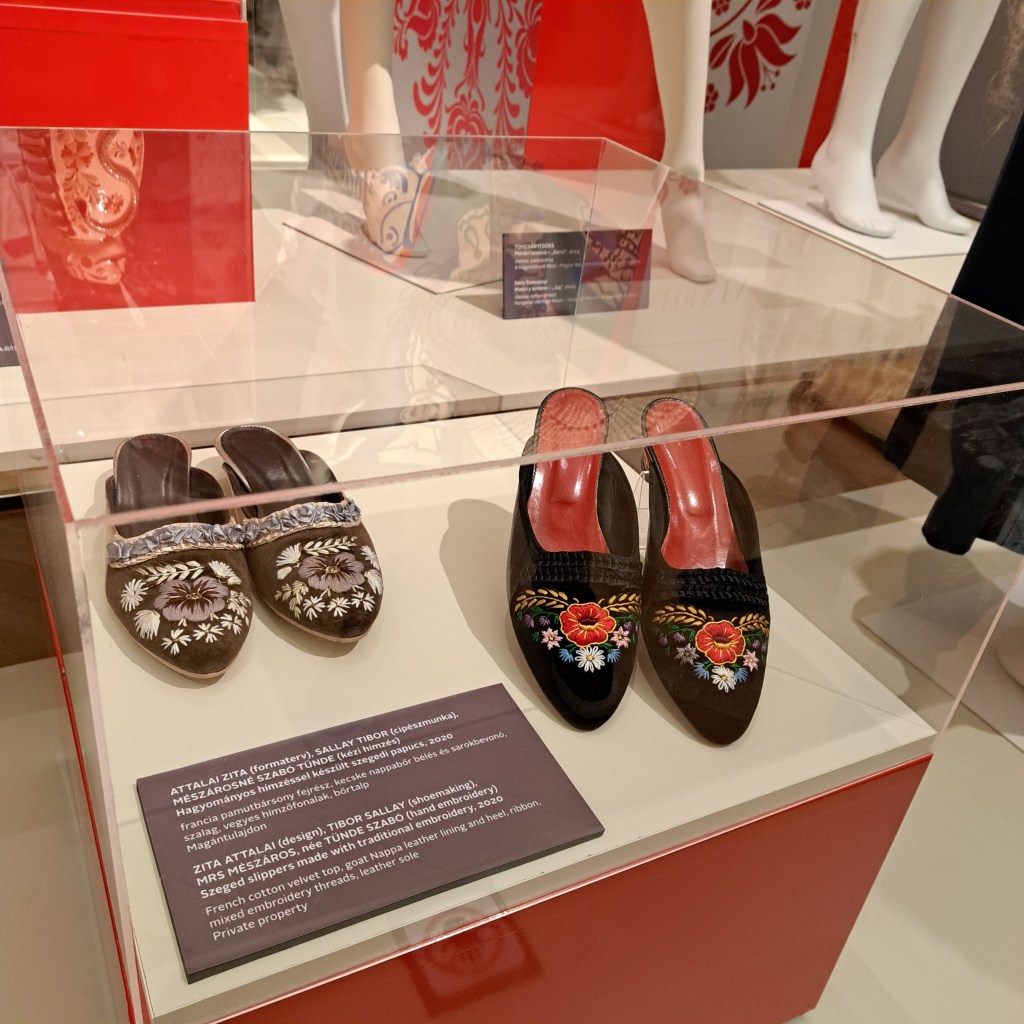 FOLK FASHION exhibition at Hungarian Heritage House 13.02. 2025 – 30.10.2025. curated by Dr. Szilvia Czingel PhD. The exhibition invites visitors to discover the unique and timeless relationship between Hungarian folk art and fashion. It showcases how the forms and motifs of popular culture have inspired the work of fashion designers from the early 20th century to today. We participated with two pairs of Szegedi slippers at the venue.