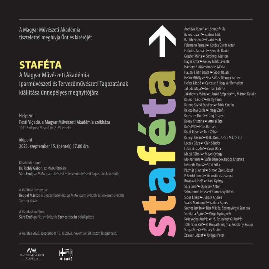 STAFÉTA Exhibition of the Department of Applied Arts and Design of the Hungarian Academy of Arts curated by Ernő Sára graphic designer | 15th 09.2023. – 20th 11.2023. | VIGADÓ Gallery Budapest